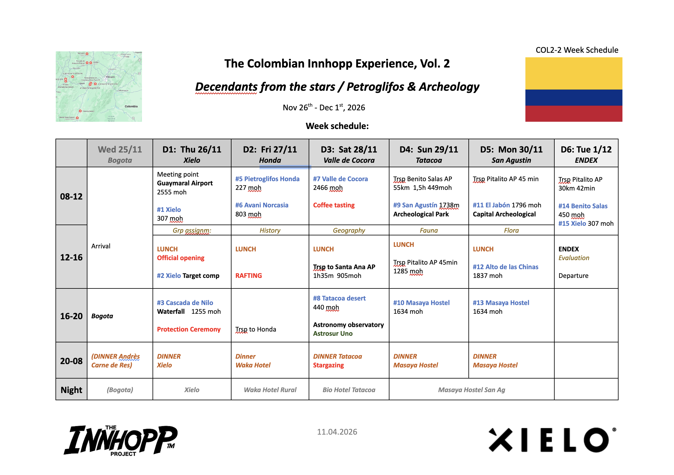 The event meeting point is planned to be in Santa Marta, north Colombia. The outward flight will be from Bogota. Exact information is to be passed on after registration.