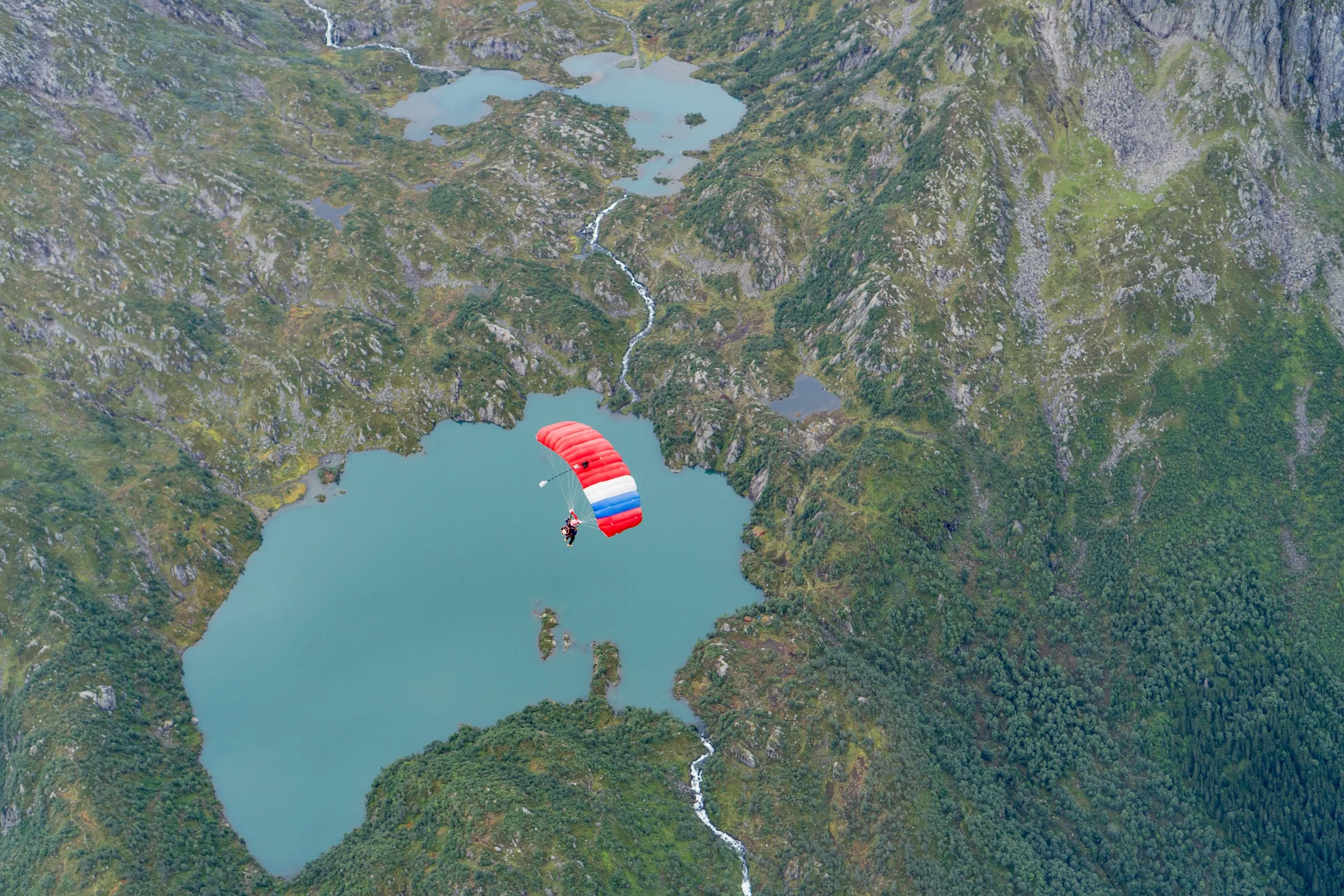 This morning, we go west and jump at a beautiful location near Skipshelleren, with old rune carvings in the rocks. The helicopter comes to pick us up for our second jump at the spectacular Bolstadfjorden, where we will also enjoy our lunch.